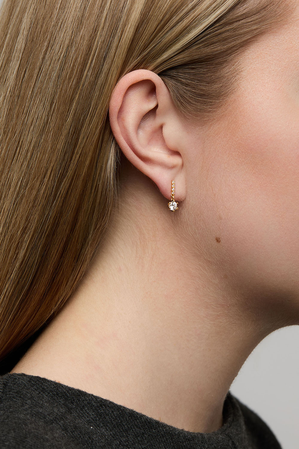 Øredobber i 18 karat gullbelagt sterlingsølv med stenger og et rundt anheng, dekorert med kubiske zirkoniasteiner.