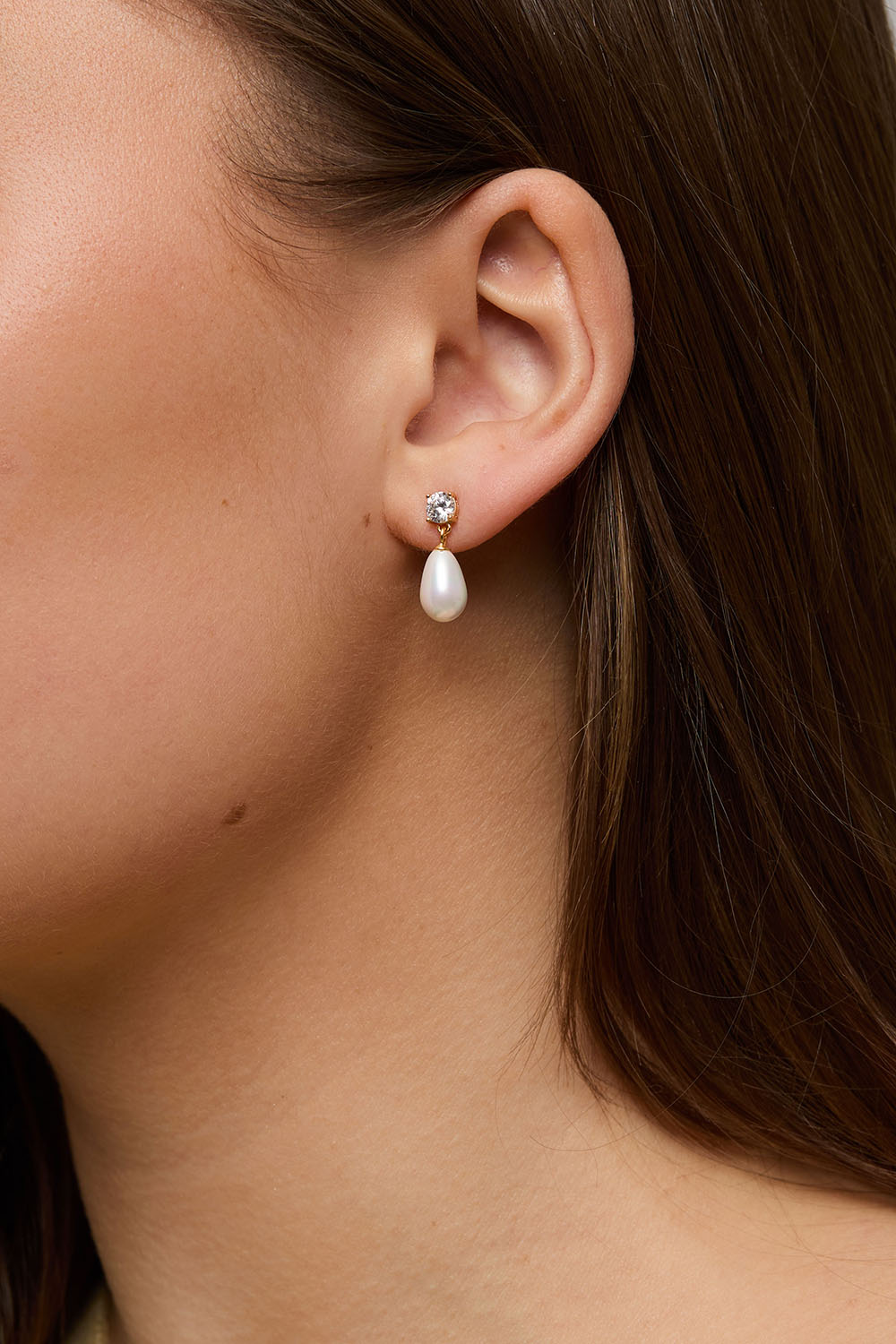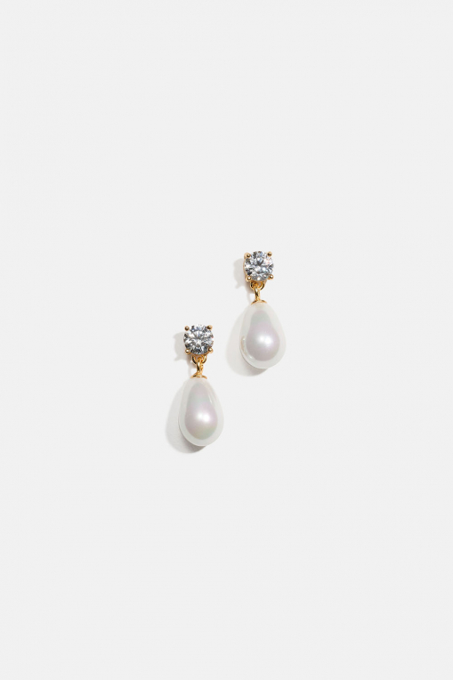 Øredobber i 18k forgylt ekte sølv med Cubic Zirconia og hengende perle i gruppen Store week / hos Glitter (553005302002)