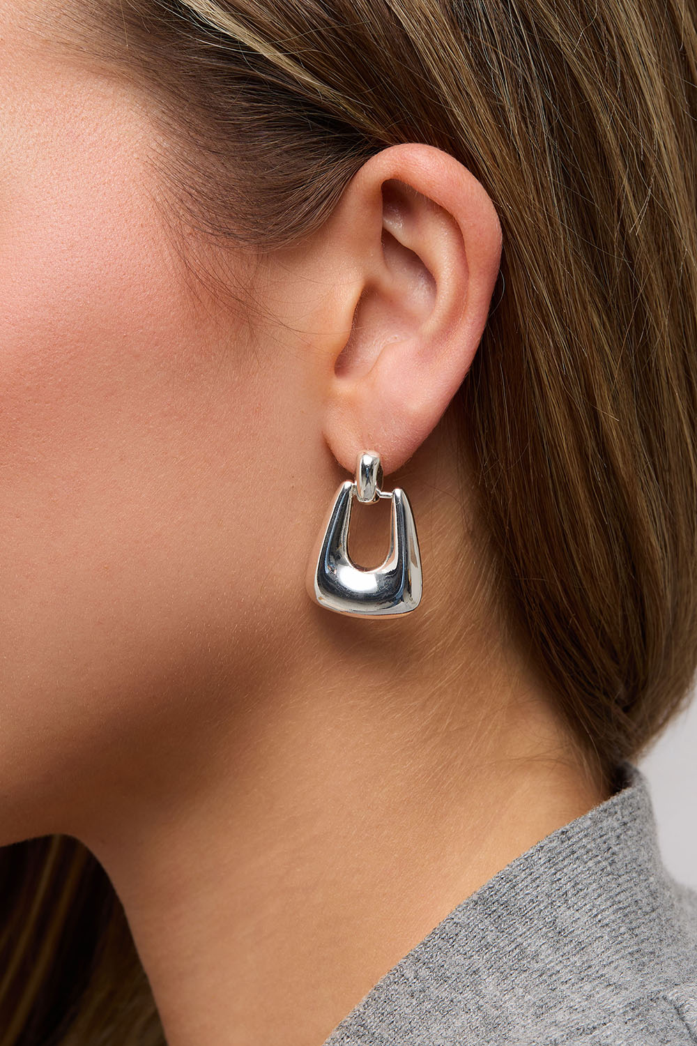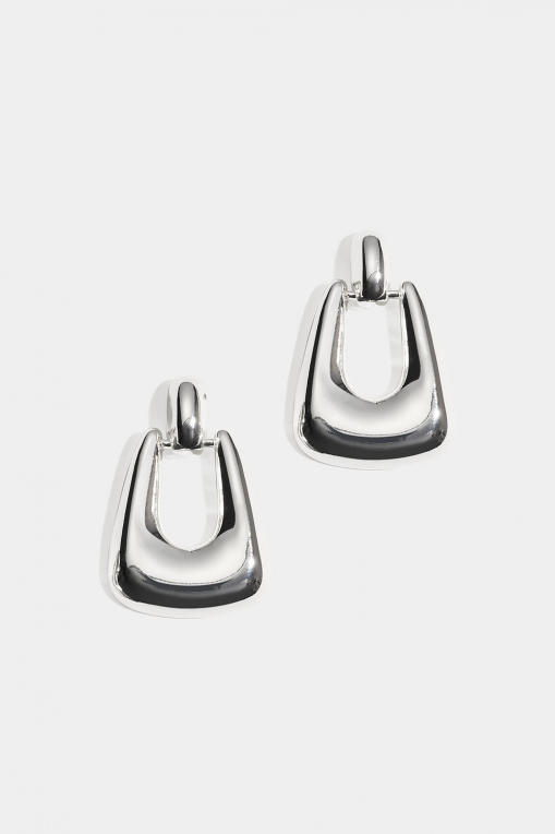 Øredobber med hengende dekorasjon i sølvfarget blankt metall.