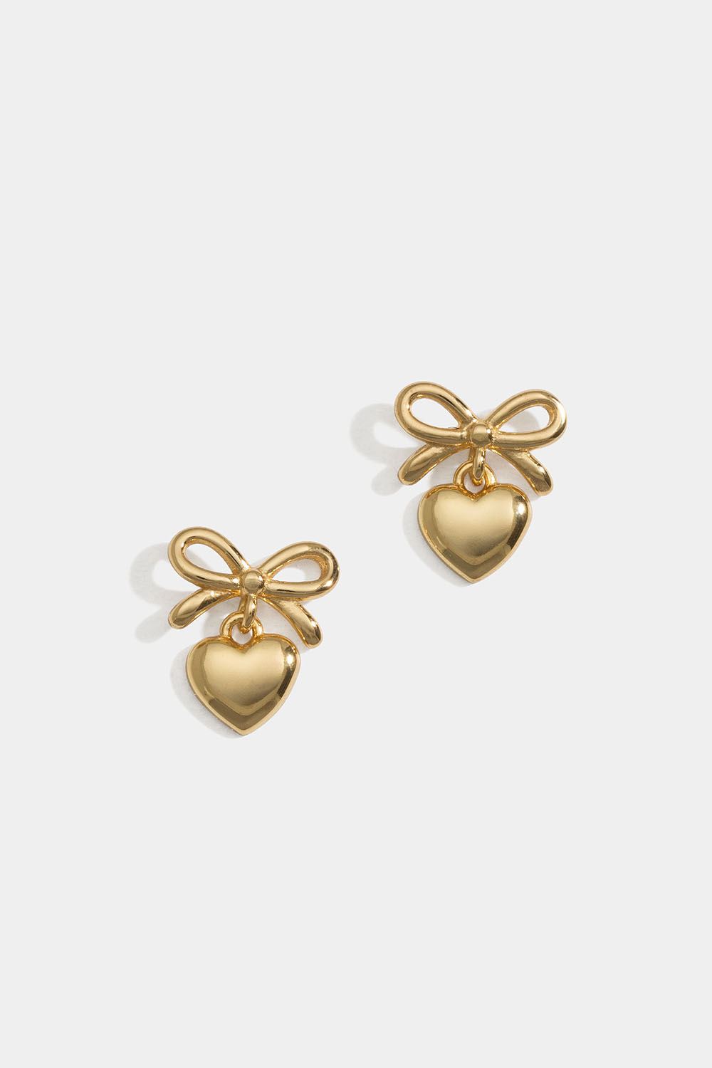 Øredobber i ekte sølv med 18 karat gullplett, med sløyfe og et hjerteformet anheng