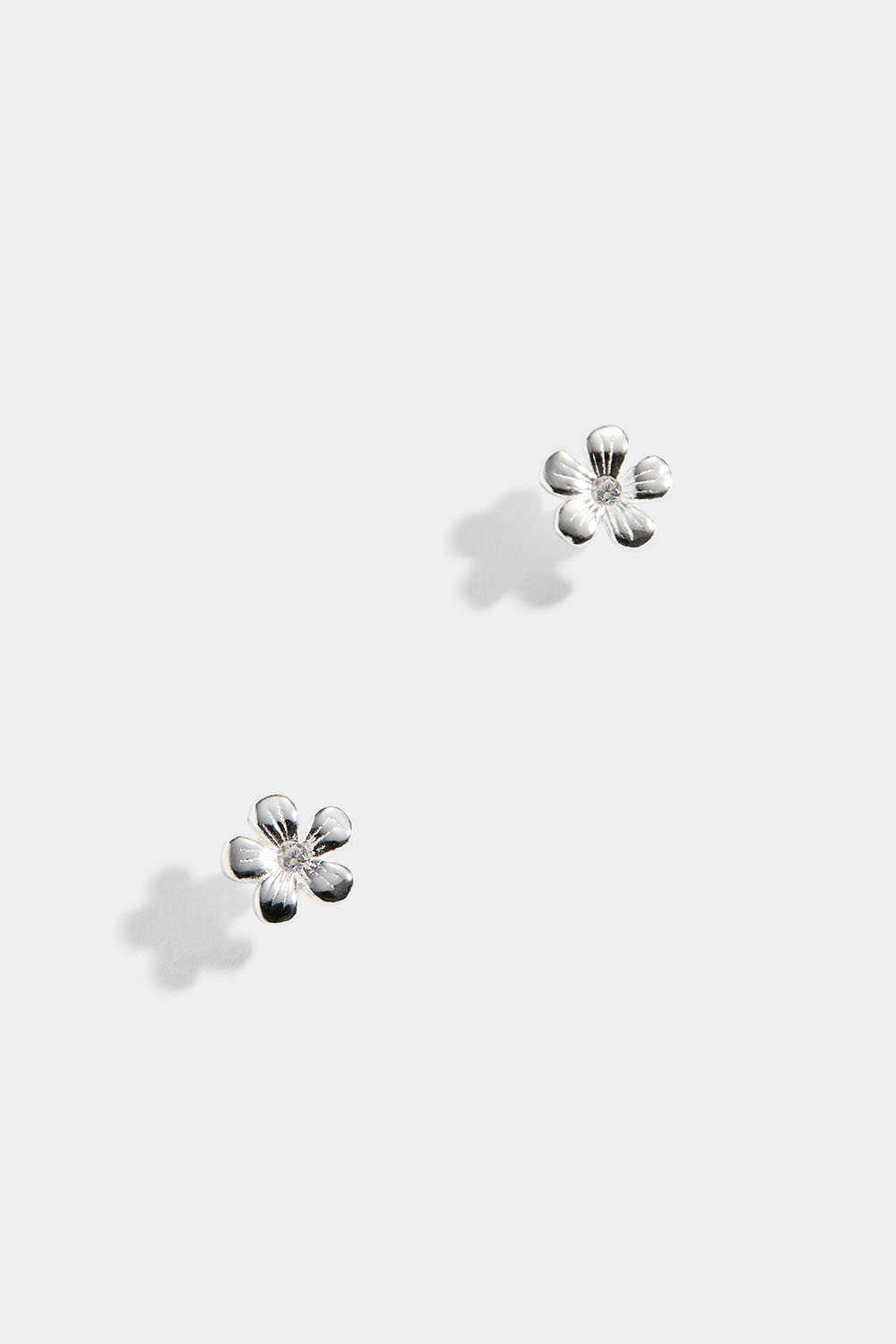 Små øredobber i ekte sølv med blomster og små Cubic Zirconia-steiner i midten.