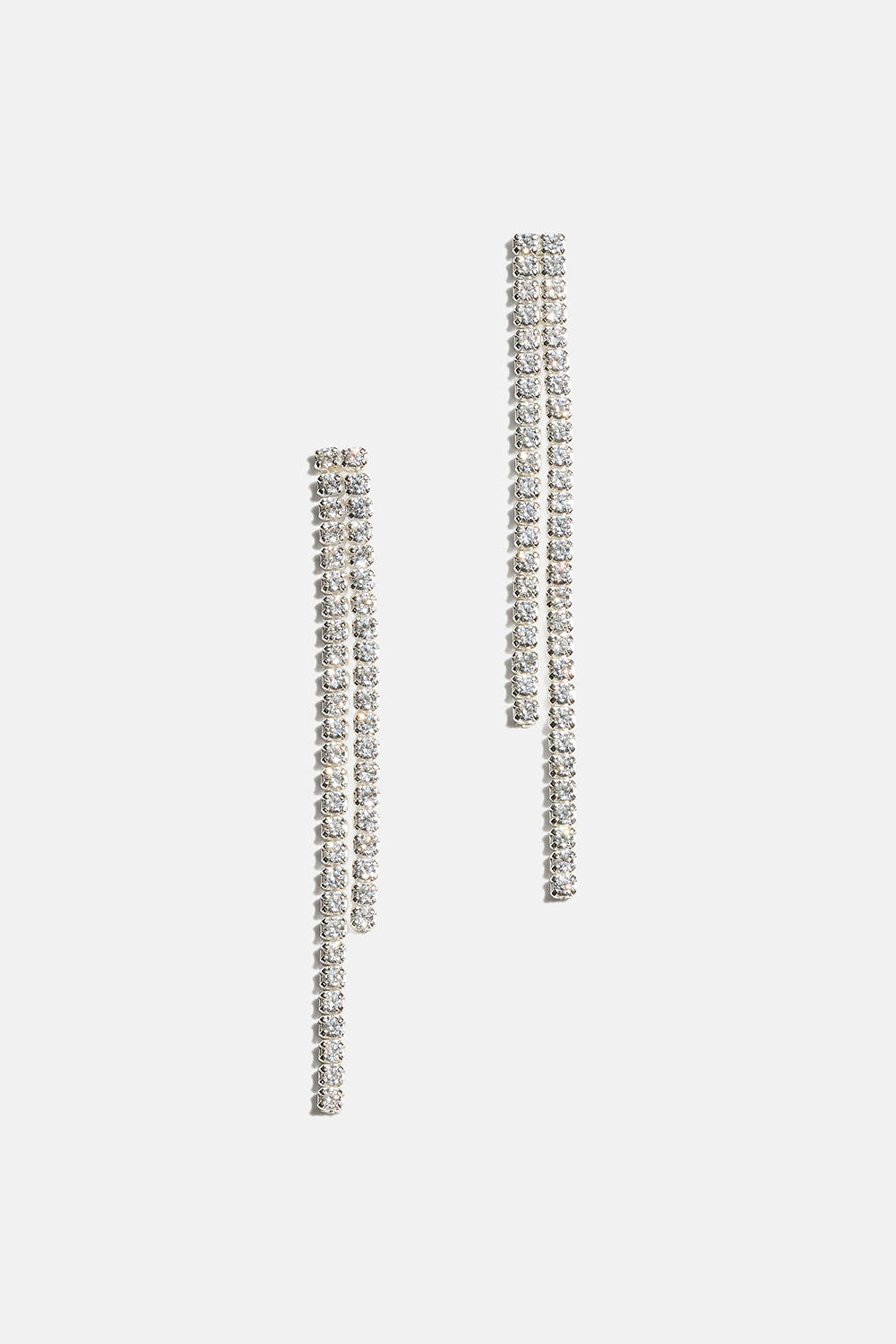 Øredobber i ekte sølv med to lenker i ulik lengde dekorert med kubisk zirkonia-steiner.