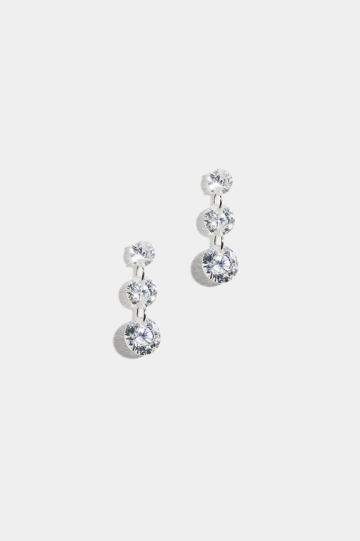Øredobber i ekte sølv med tre kubisk zirkonia-steiner