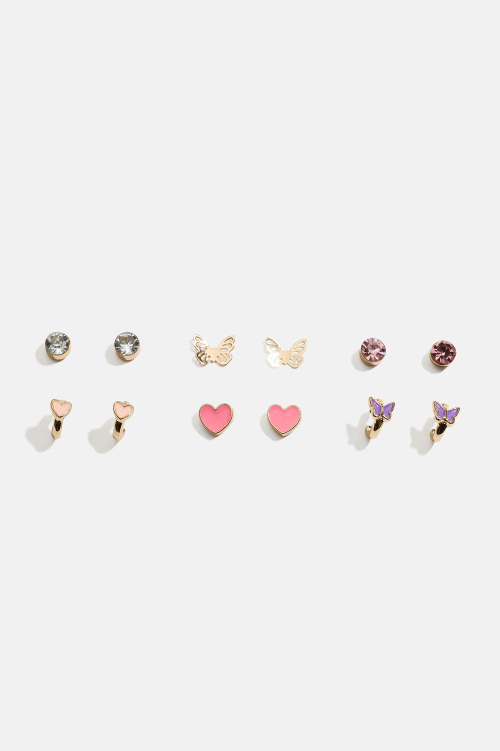 Øredobber med hjerter og sommerfugler, 6-pakning i gruppen Barn / Barnesmykker / Barneøredobber hos Glitter (402000319900)