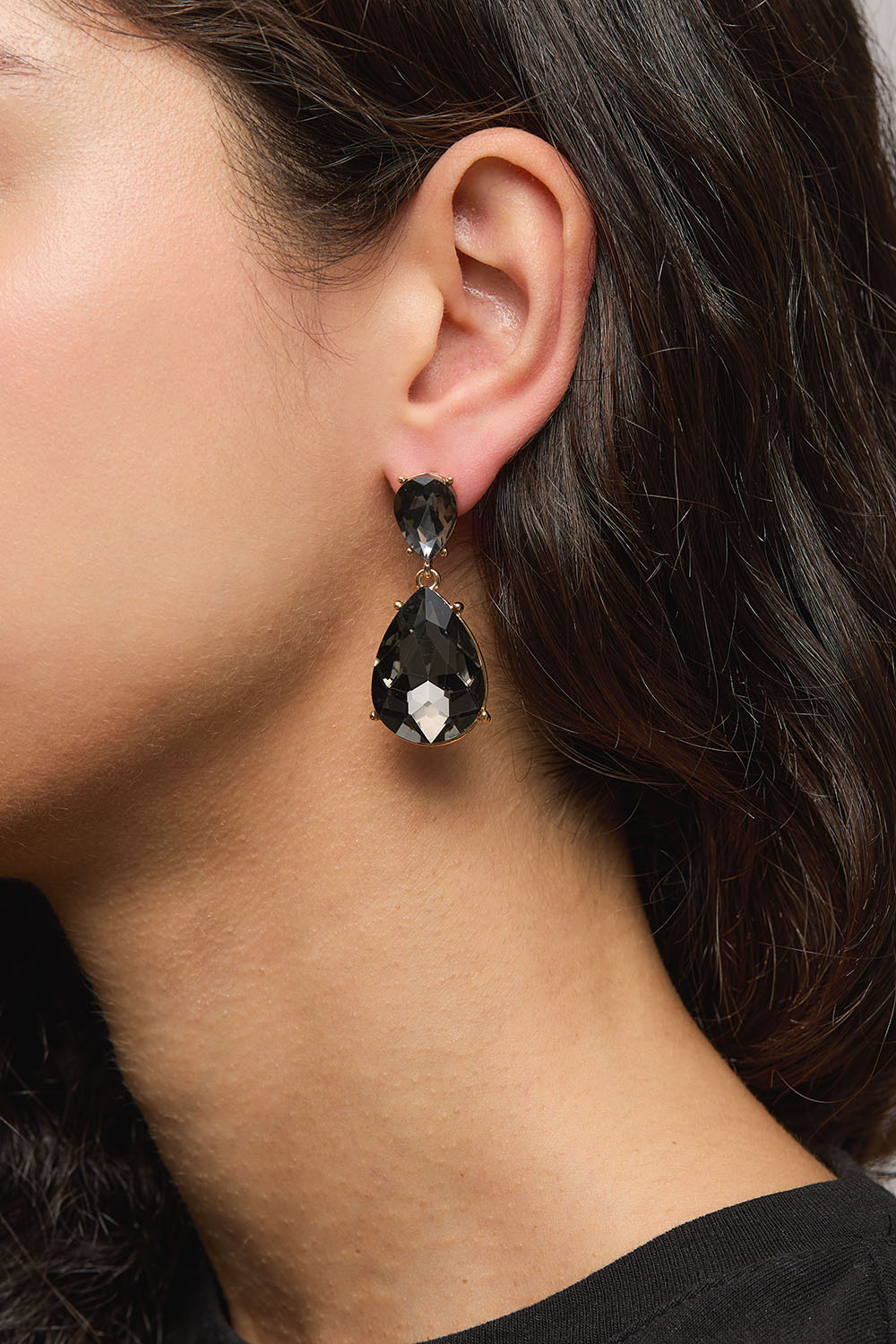 Øredobber med mørkegrå dråpeformede glassteiner i gruppen Smykker / Øredobber / Rhinestone hos Glitter (253010390202)