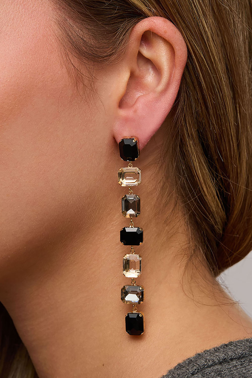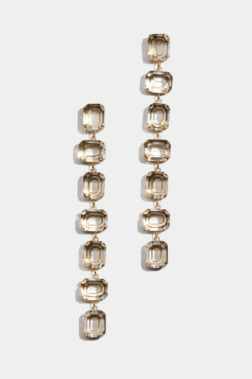 Lange øredobber med rektangulære glassteiner i hvitt.