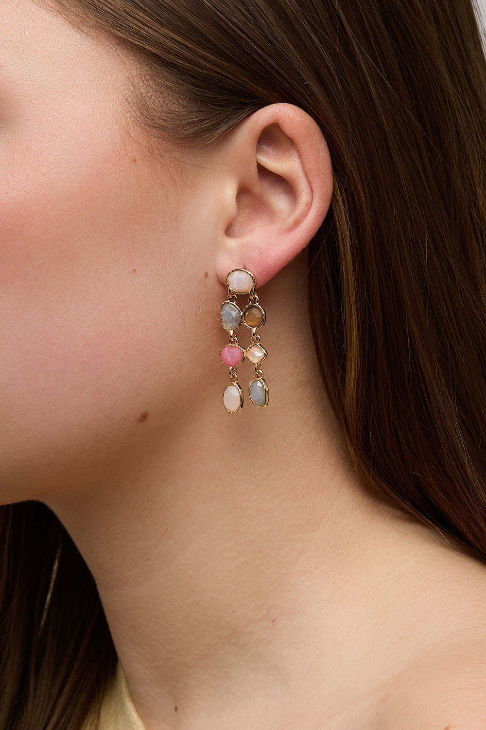 Øredobber med to anheng laget av steiner i forskjellige farger