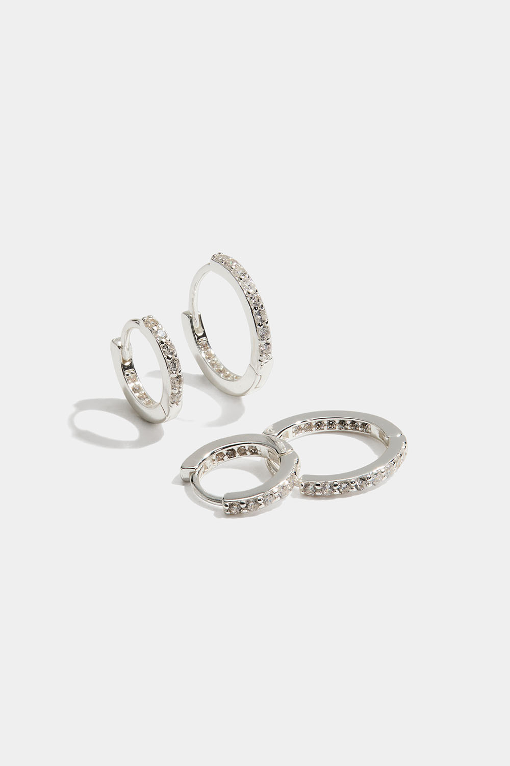 Øreringer i ekte sølv med Cubic Zirconia, 2-pakning