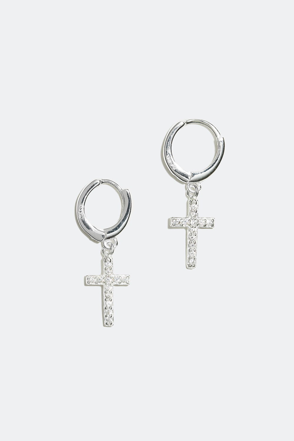 Øreringer med korsformet anheng, ekte sølv, 0,8 cm