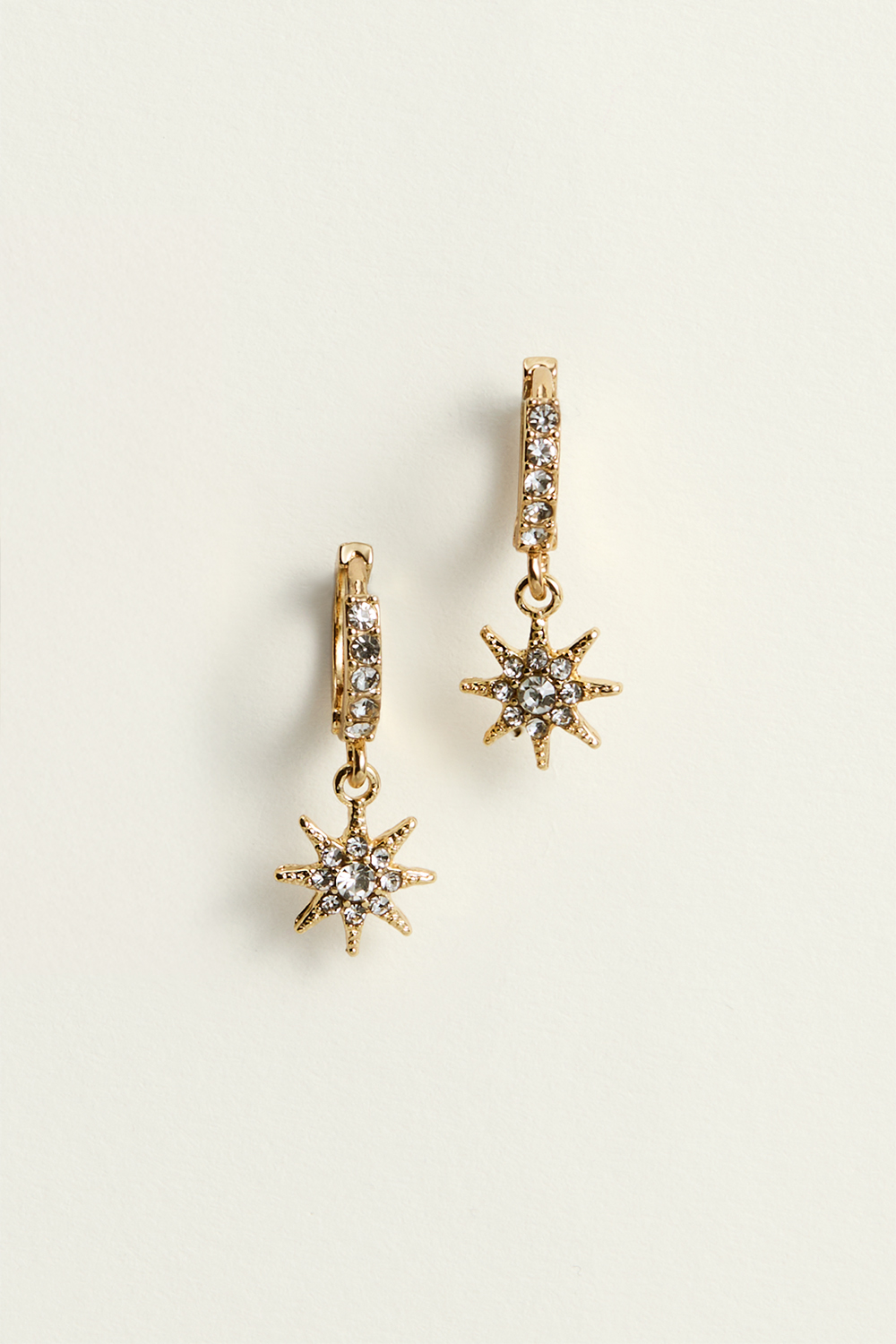 Øreringer med stjerneformede anheng og glassteiner