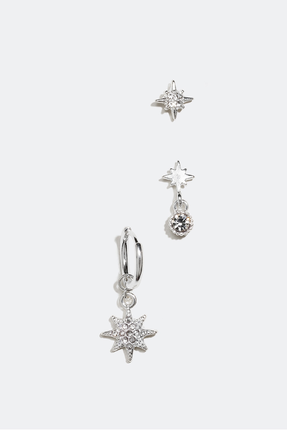Øreringer og studs med stjerner, 3-pakning i gruppen Smykker / Øredobber / Flerpakning hos Glitter (25300183)