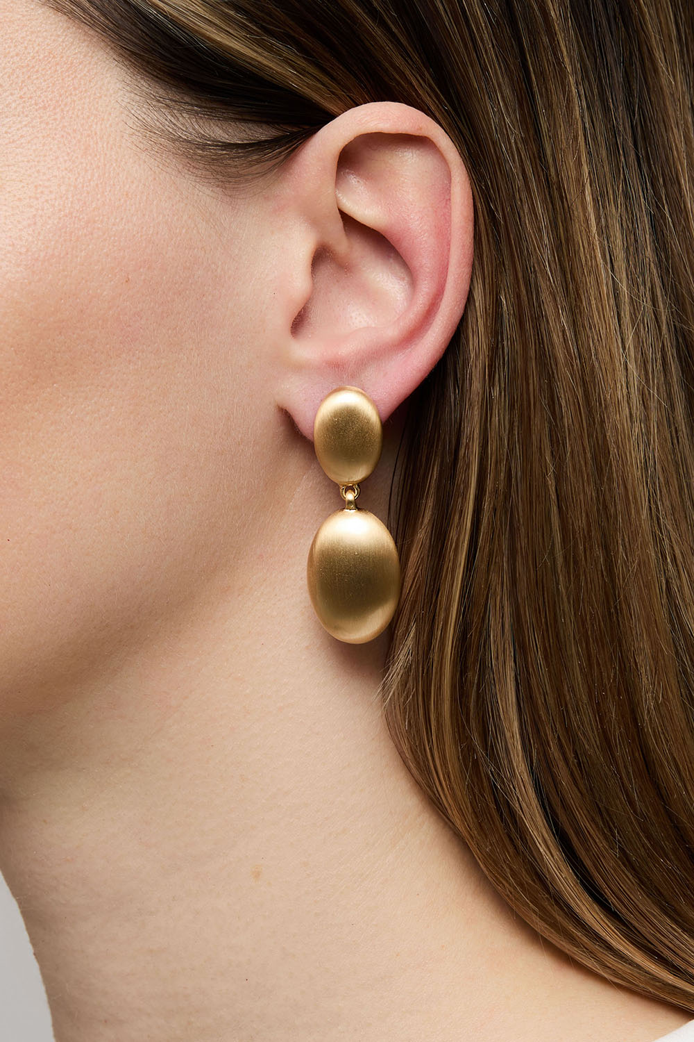 Klipsøredobber i gullfarget metall med oval design med en matt og børstet overflate. Et par stilige øredobber som er perfekte for dem som ikke har hull i ørene.