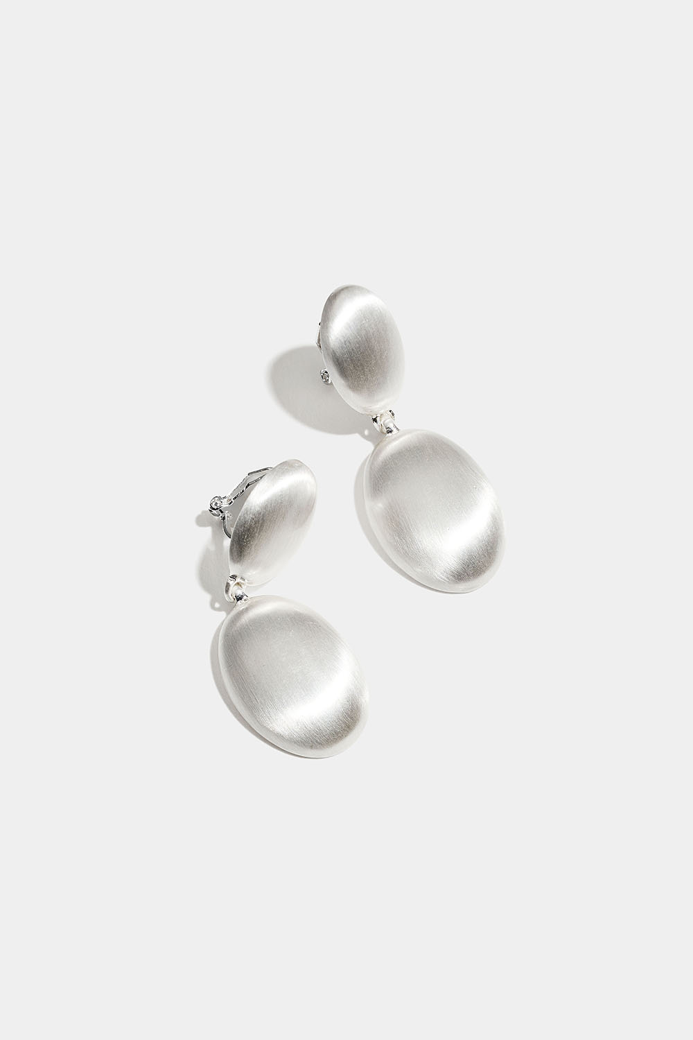 Metallklipsøredobber med oval design med en matt og børstet overflate. Et par stilige øredobber som er perfekte for dem som ikke har hull i ørene.