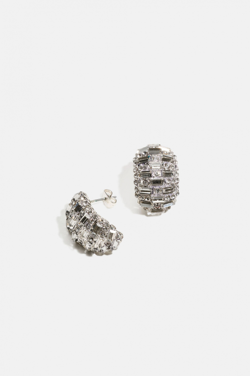 Ovale øredobber i lett buet form pyntet med glasstener med forskjellig form.