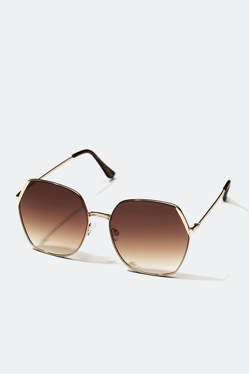 Store solbriller med brune glass og tynn gullfarget innfatning. Et par retroinspirerte solbriller i oversize-modell som gir antrekket ditt det lille ekstra.