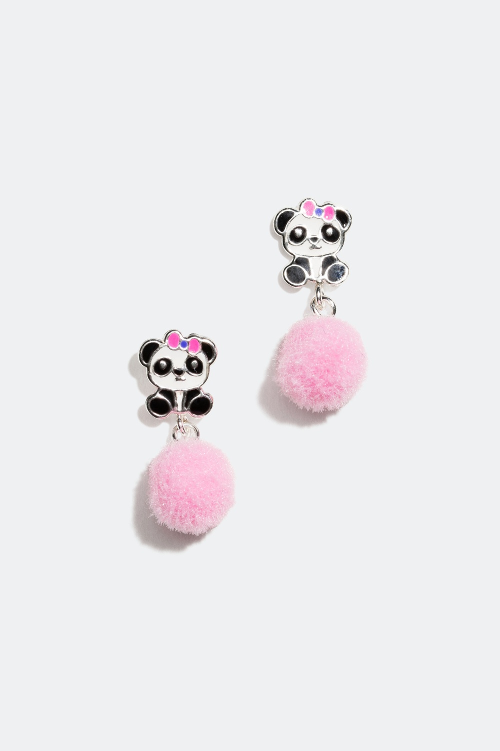 Pandaøredobber med rosa pompong i gruppen Barn / Barnesmykker / Barneøredobber hos Glitter (326279)