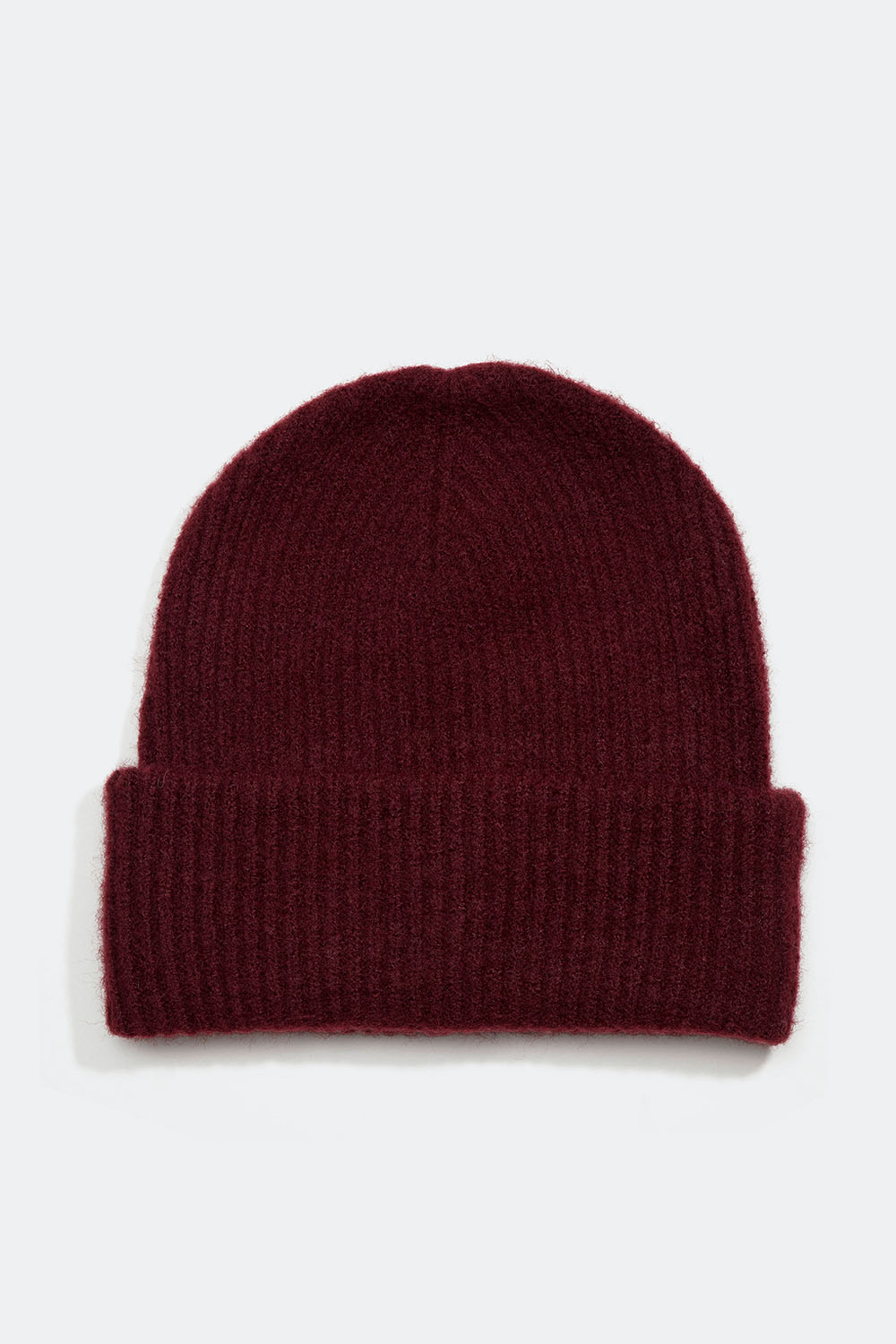 Ribbestrikket lue i mørkerød i gruppen Accessories / Strikket / Luer hos Glitter (171001136300)