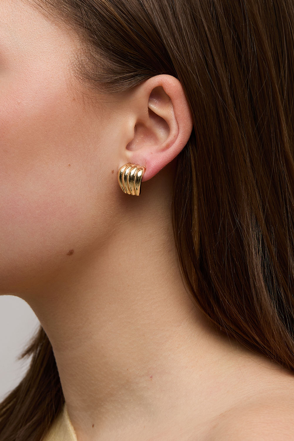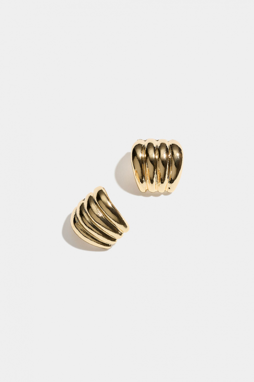 Rillede øredobber i gullfarget metall med et kraftig design.