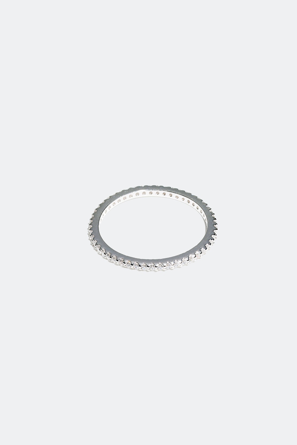 Ring i ekte sølv med små, runde Cubic Zirconia-steiner rundt hele ringen.