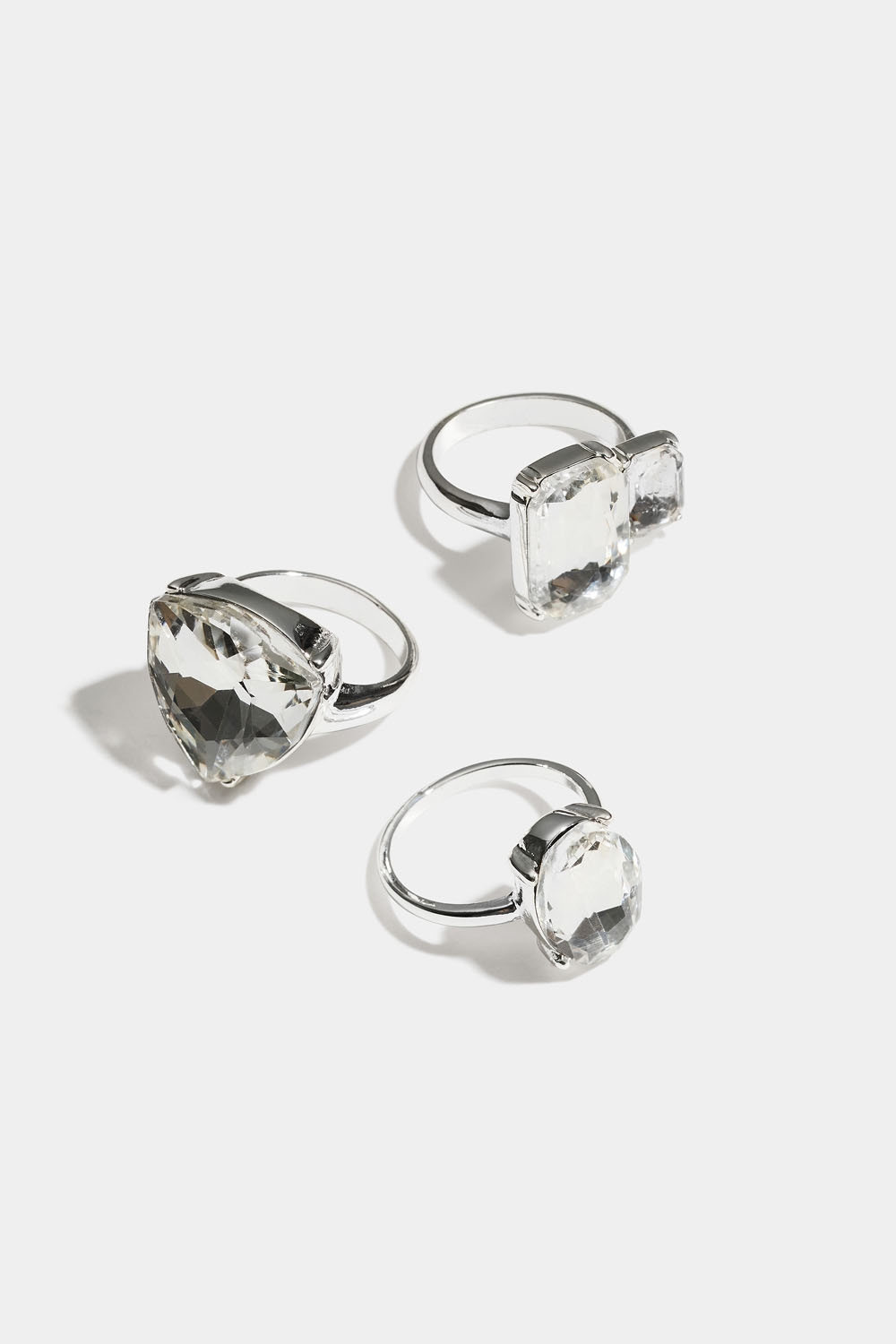 Ringer med glassteiner, 3-pakning i gruppen Smykker / Ringer / Flerpakning hos Glitter (2560016302)