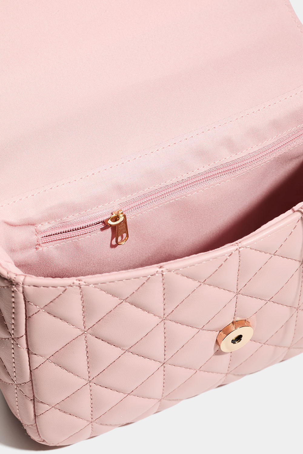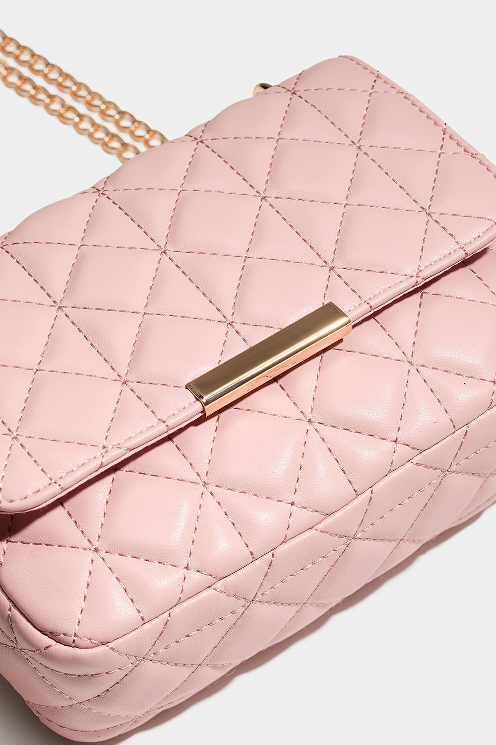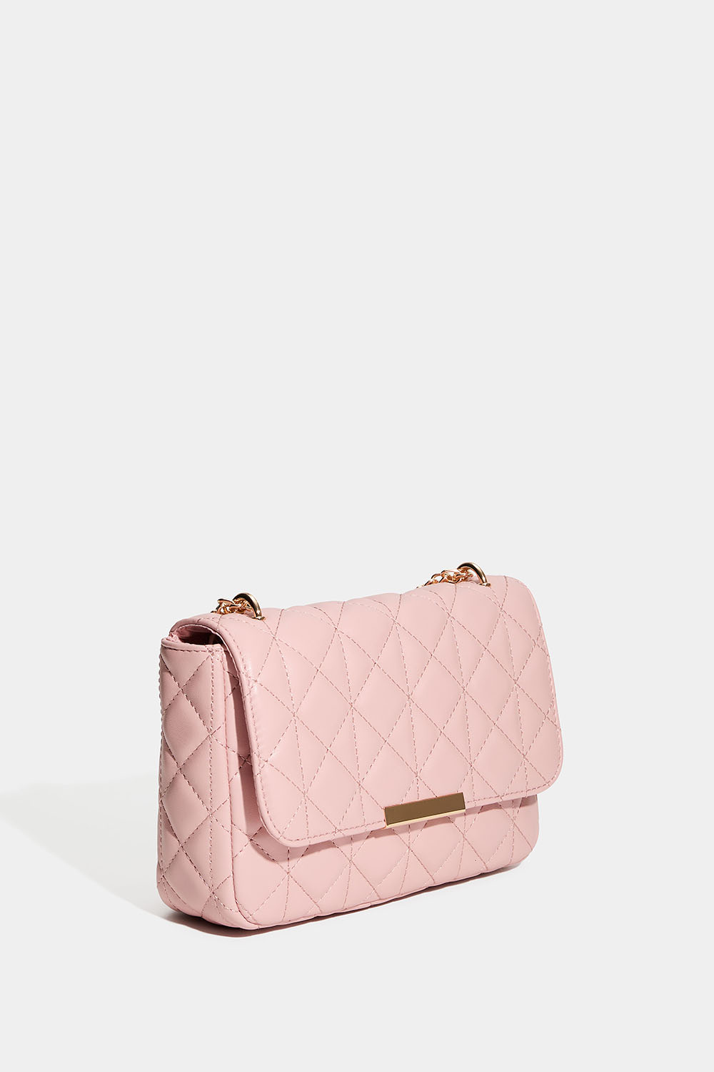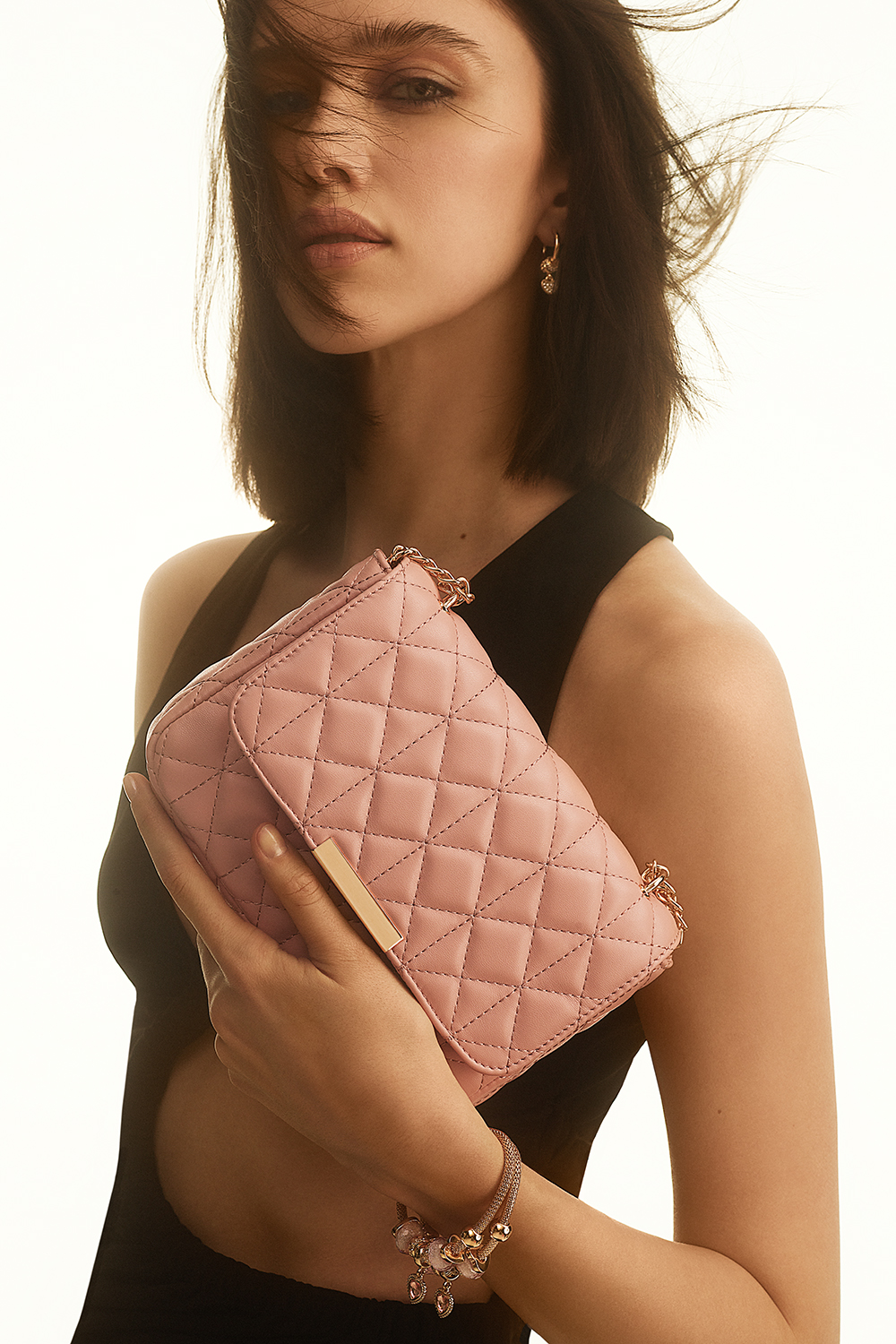Rosa veske med quiltet design og gullfarget skulderrem i gruppen Vesker / Skuldervesker hos Glitter (172002015000)