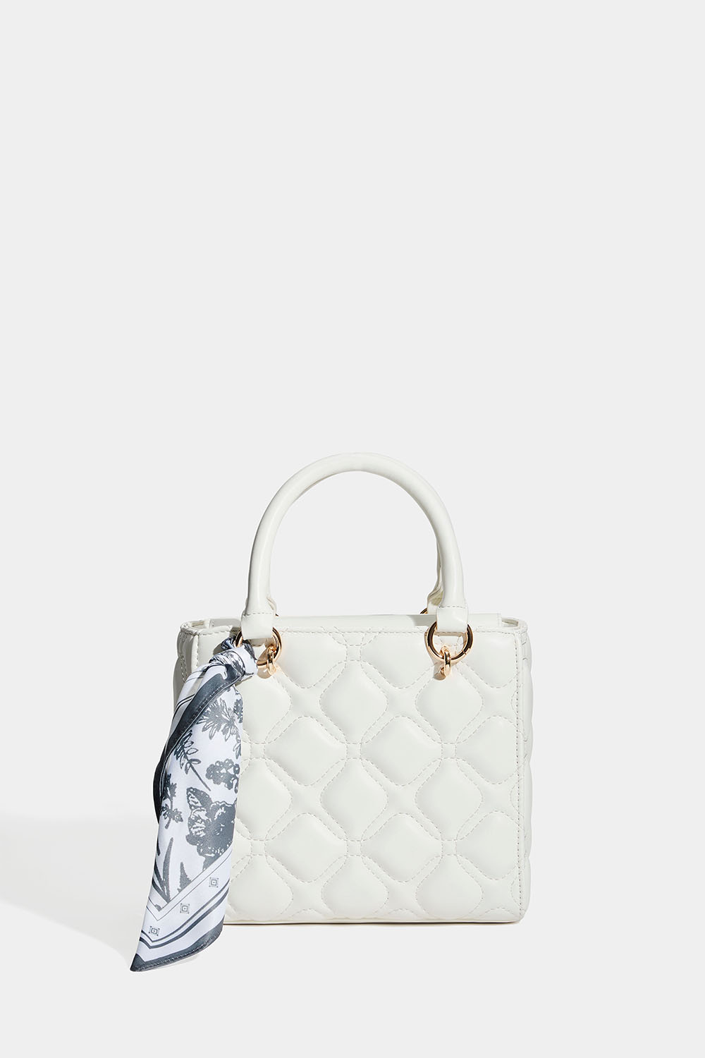Rosa veske med to håndtak, quiltet design og medfølgende rosa skjerf. Vesken lukkes med en magnetknapp og har en liten innerlomme som lukkes med glidelås. Leveres også med en avtakbar skulderrem, slik at du kan henge vesken over skulderen eller på skrå over magen.