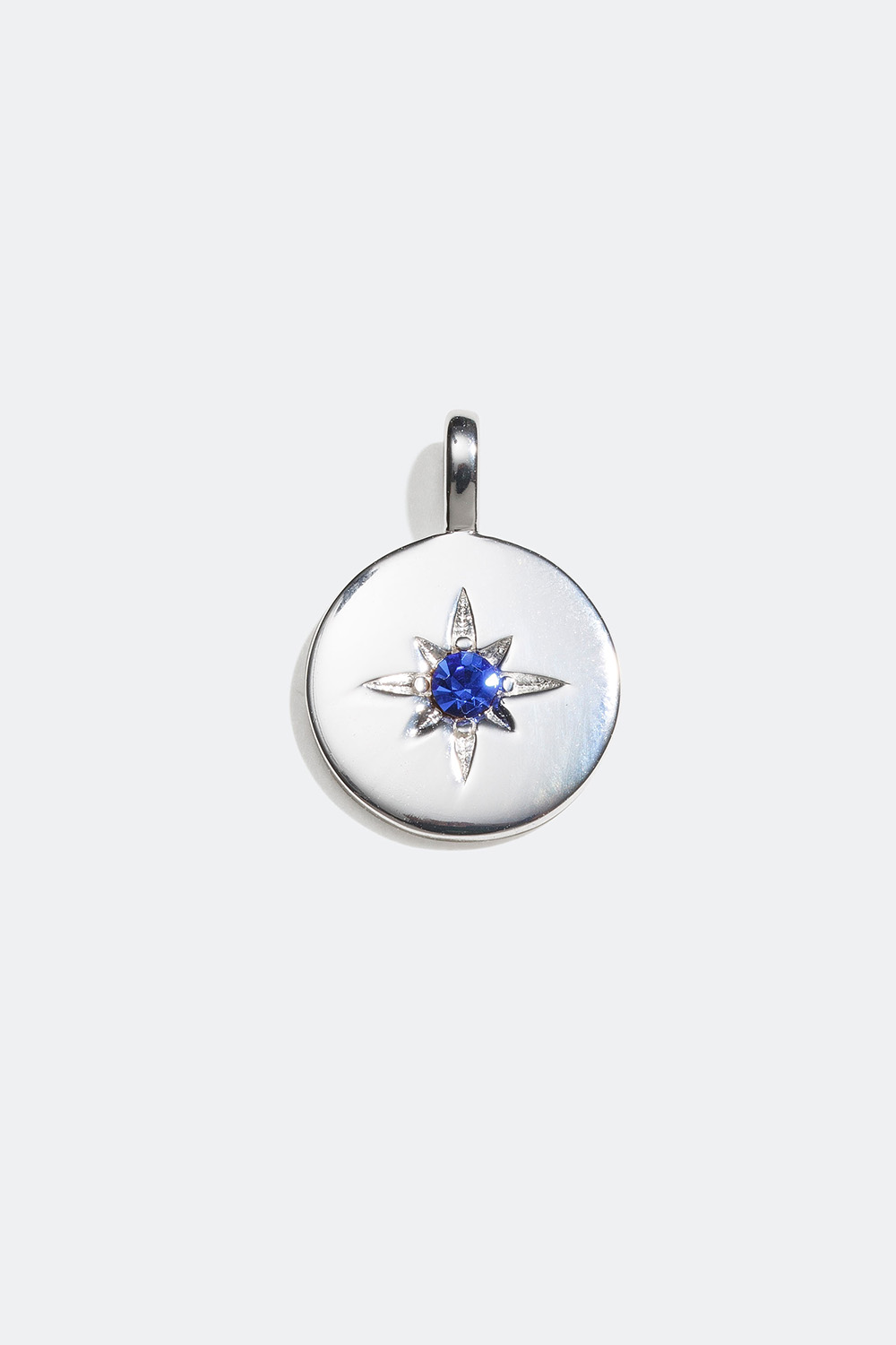 Rundt anheng i ekte sølv, med et stjernemotiv som er dekorert med en fødselssteinfarget Cubic Zirconia-stein. Finn din måned i menyen og match anhenget med en halslenke. Kombiner gjerne med flere av våre anheng og gjør smykket mer personlig ved å kombinere med for eksempel bokstaver. Et populært smykke som også er perfekt å gi som presang.