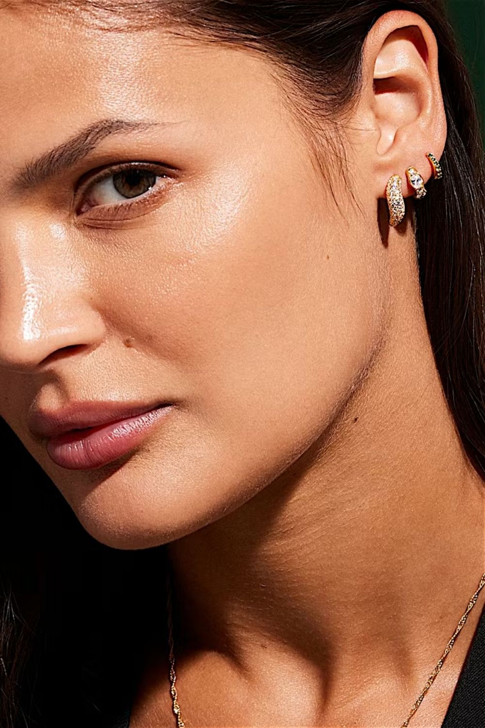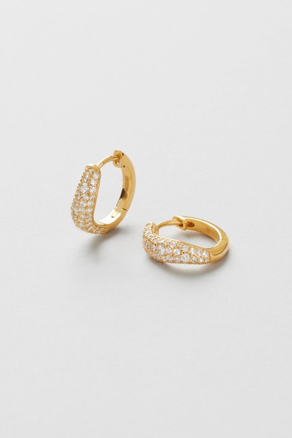 Øredobber pyntet med klare Cubic Zirconia-stener, forgylt med 18k gull og med en kjerne av ekte sterlingsølv 925.