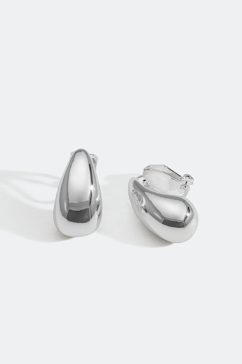 Små, dråpeformede klipsøredobber i blankt metall. Et par stilrene øredobber som passer perfekt til deg som ikke har hull i ørene.