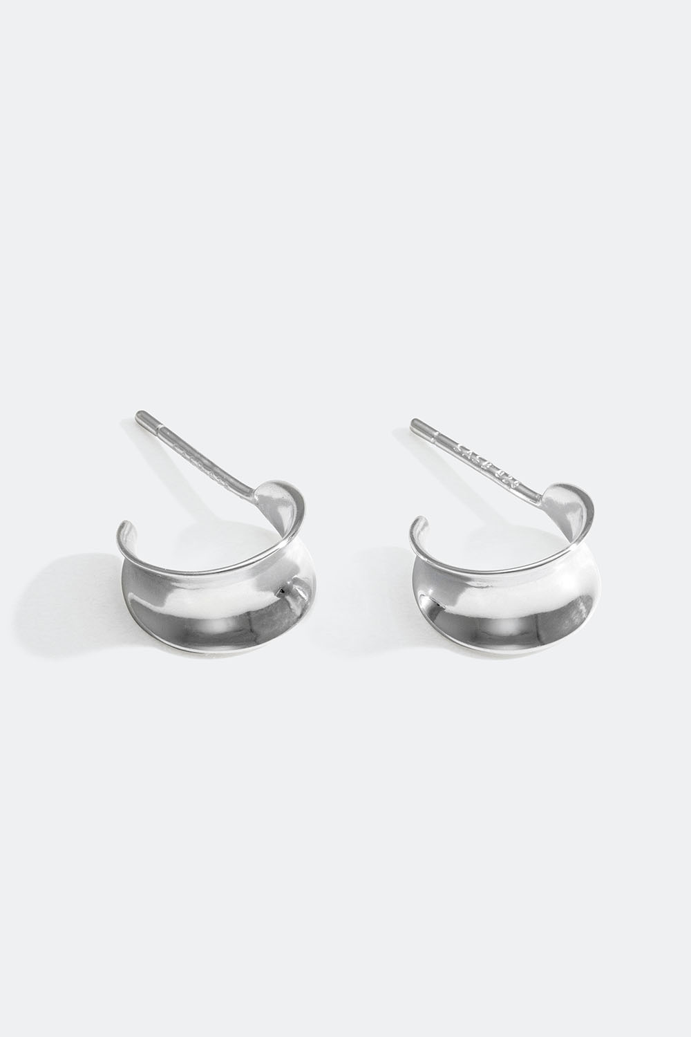Små, brede øreringer i ekte sølv i flat og konkav design.