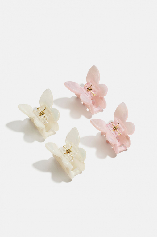 Små hårspenner med rosa og hvite sommerfugler, 4-pakning