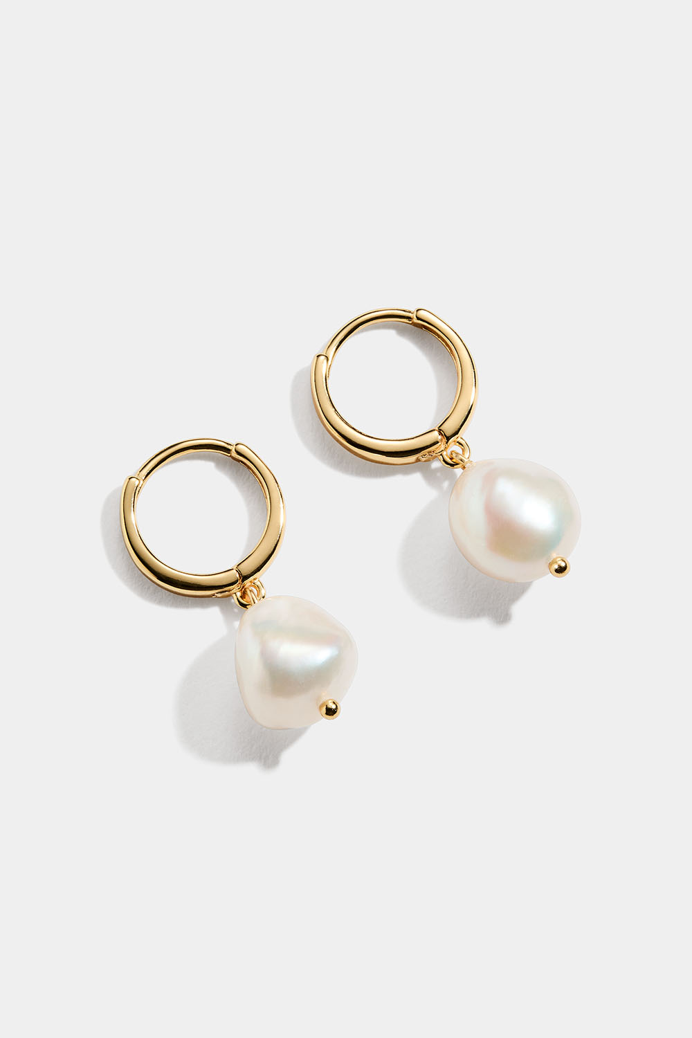 Små hoops i 18k forgylt ekte sølv med hengende perle i organisk form.
