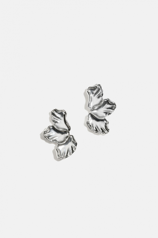 Små metalløredobber formet som blomsterblader med opprullede kanter.