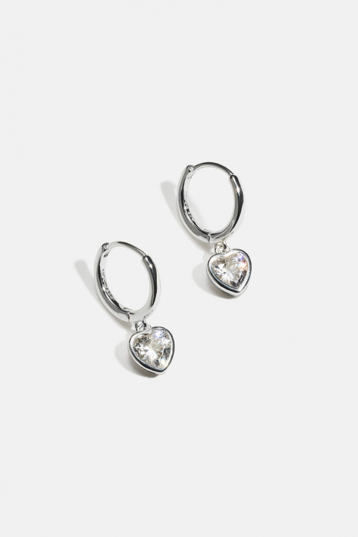 Små øredobber i ekte sølv med hengende hjerte i Cubic Zirconia-stein.