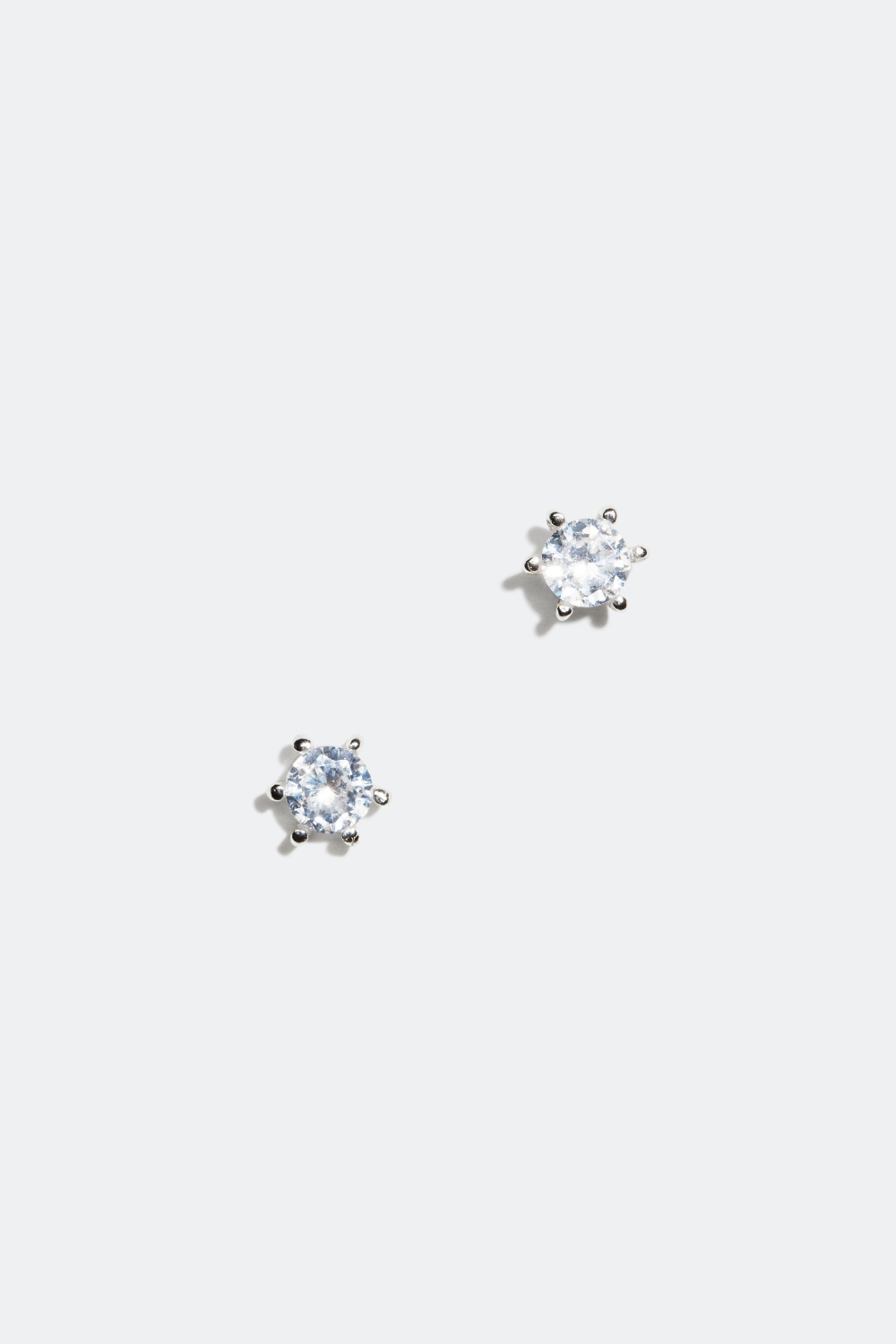 Små øredobber i ekte sølv med runde glassteiner i Cubic Zirconia.