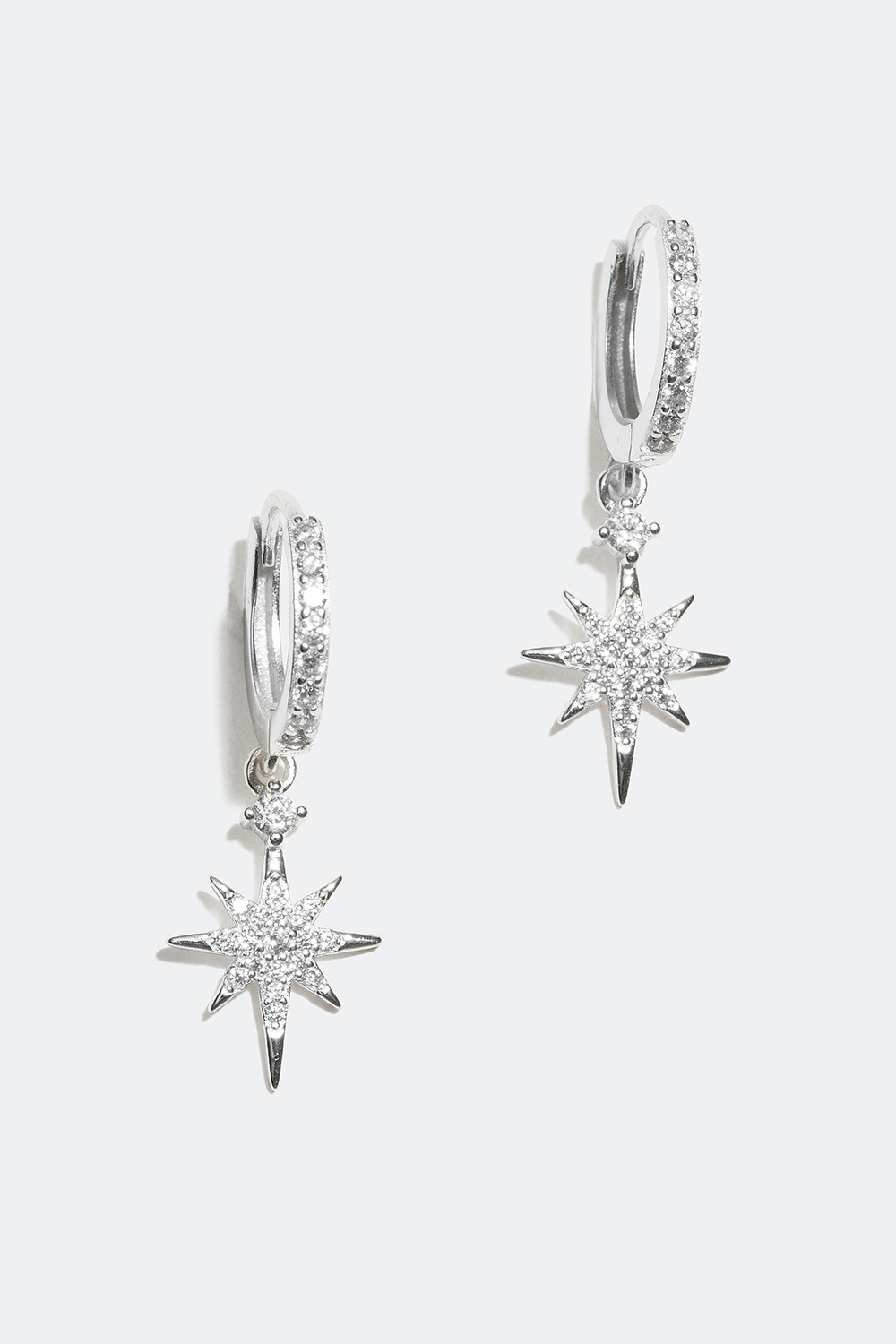 Små øreringer med anheng av stjerner i ekte sølv som er utsmykket med små Cubic Zirconia steiner. Et par dekorative øredobber med glitrende stjerner som vil gi det lille ekstra til antrekket ditt.