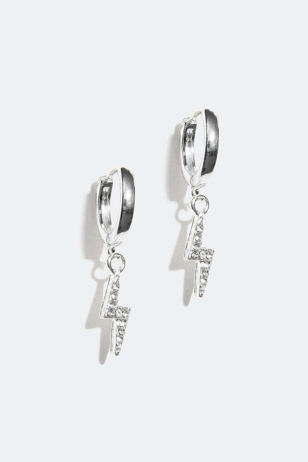 Små øreringer i metall, med lyn som er dekorert med glitrende glassteiner. Et par dekorative øredobber som enkelt kan åpnes og lukkes med klikklås.