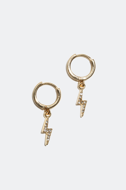 Små øreringer i metall, med lyn som er dekorert med glitrende glassteiner. Et par dekorative øredobber som enkelt kan åpnes og lukkes med klikklås.