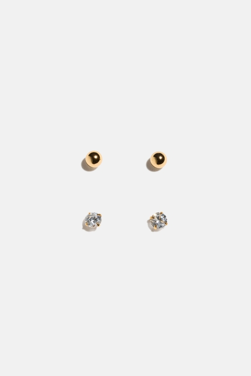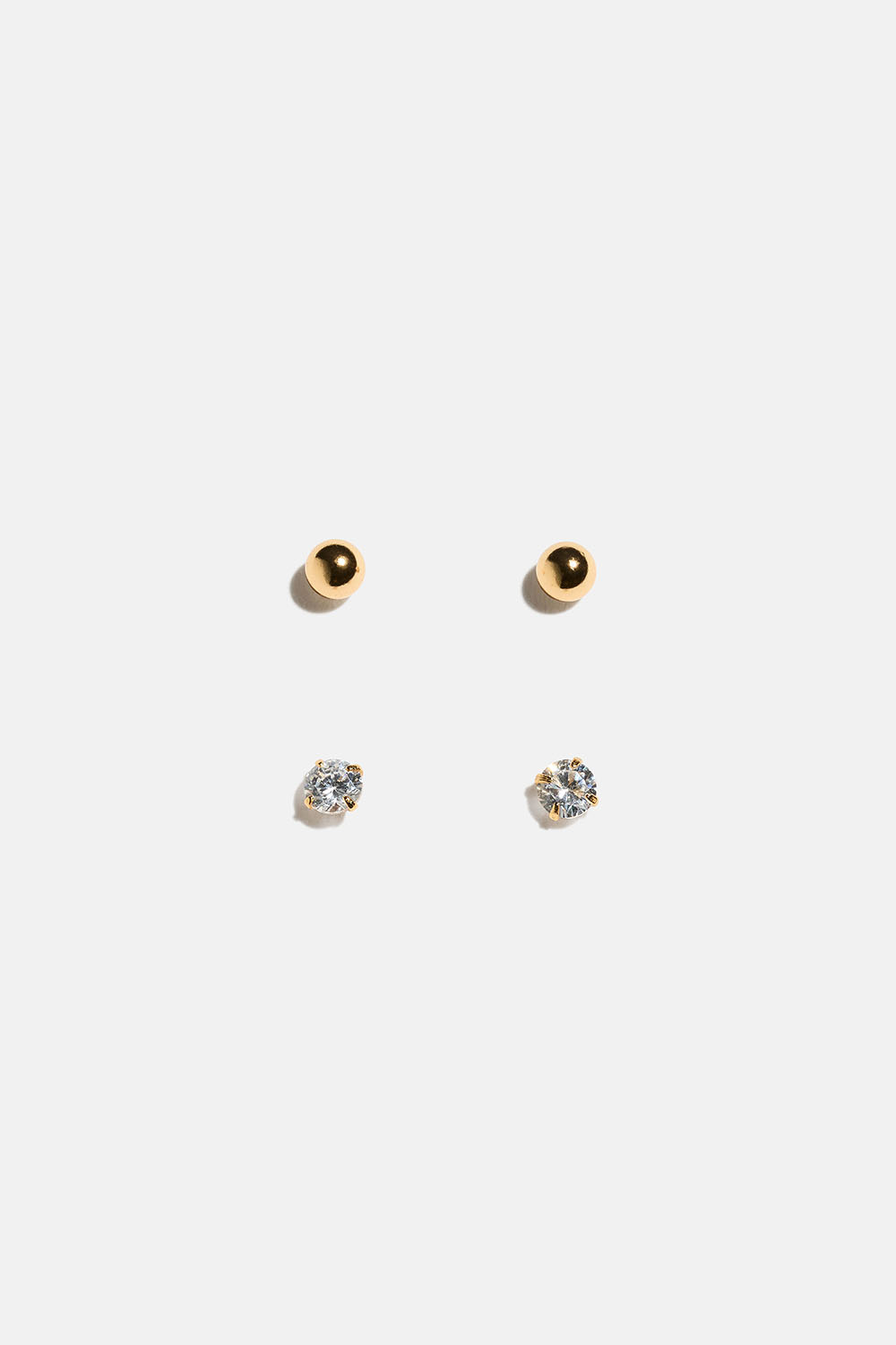 To par ministuds i 18k gullbelagt ekte sølv. Et par klassiske kuler og et par med små kubisk zirkonia-steiner.