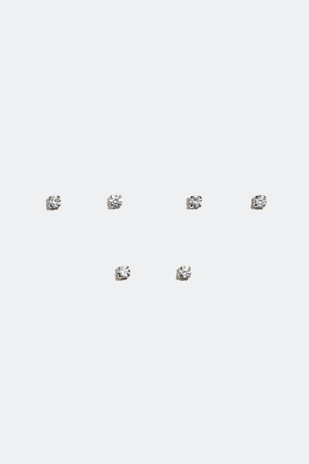 Små glitrende øredobber i ekte sølv med Cubic Zirconia-steiner. En 3-pakning med klassiske studs med tidløst design som passer perfekt sammen med andre øredobber, hvis du har flere hull. Passer perfekt å bruke til både hverdag og fest.