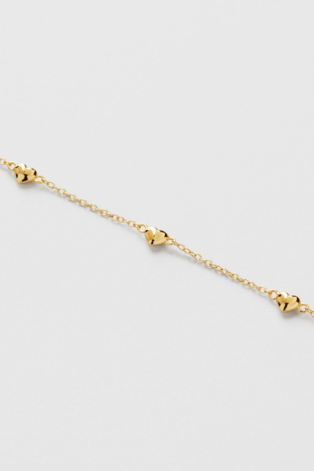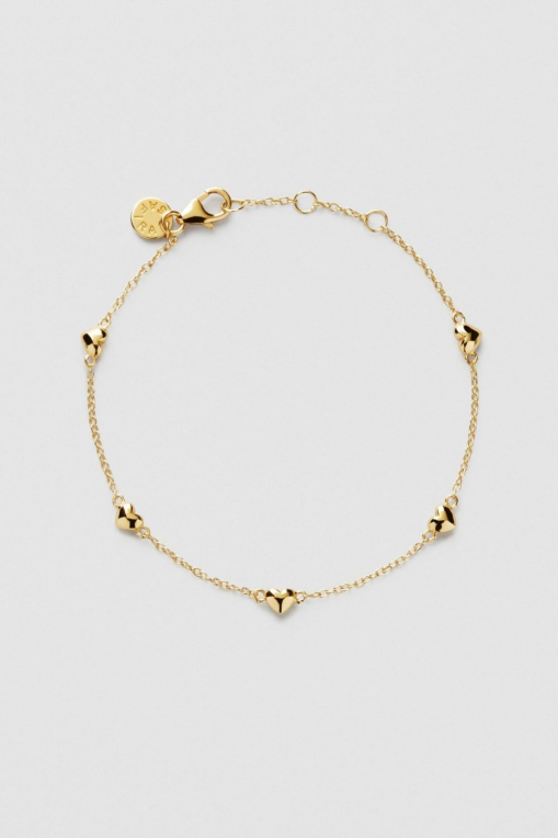 Armbånd med fem puffede hjerter forgylt med ekte 18k gull og med en kjerne av ekte sterlingsølv 925.