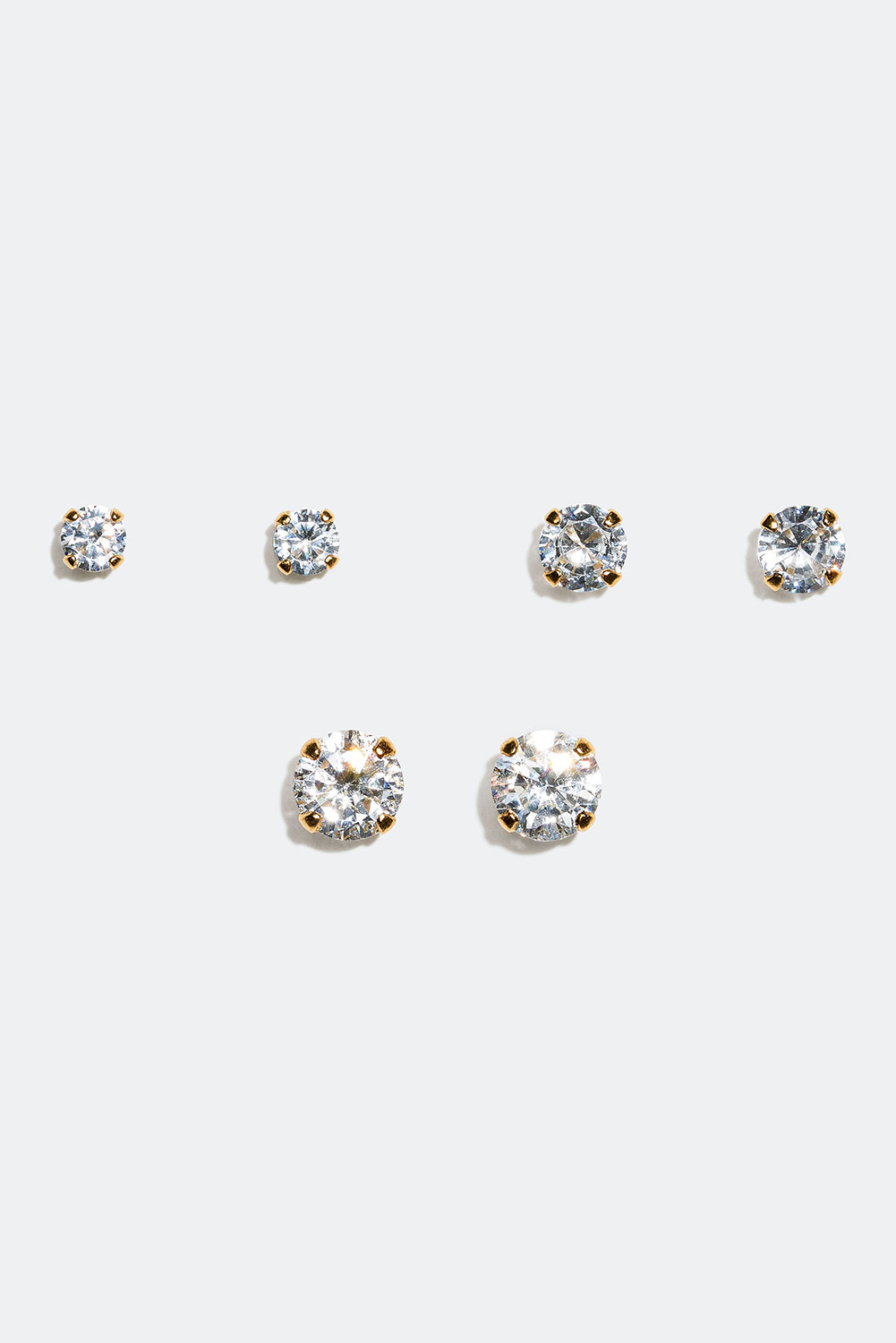 Ørestuds runde glassteiner, forgylt med 18K gull, 3-pack, 4 mm