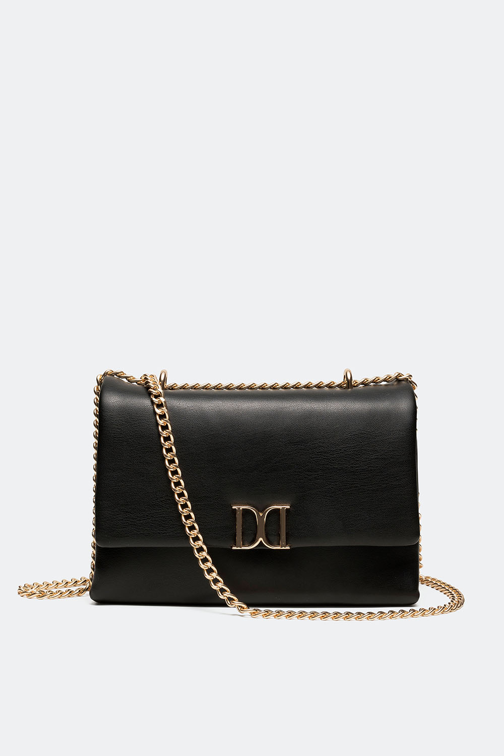 Svart veske i vattert design med gullfarget Don Donna-spenne og skulderremkjede. Kjedet kan brukes både som en kort skulderrem og en lener for crossbody. Et stilrent veske som passer til alle anledninger.