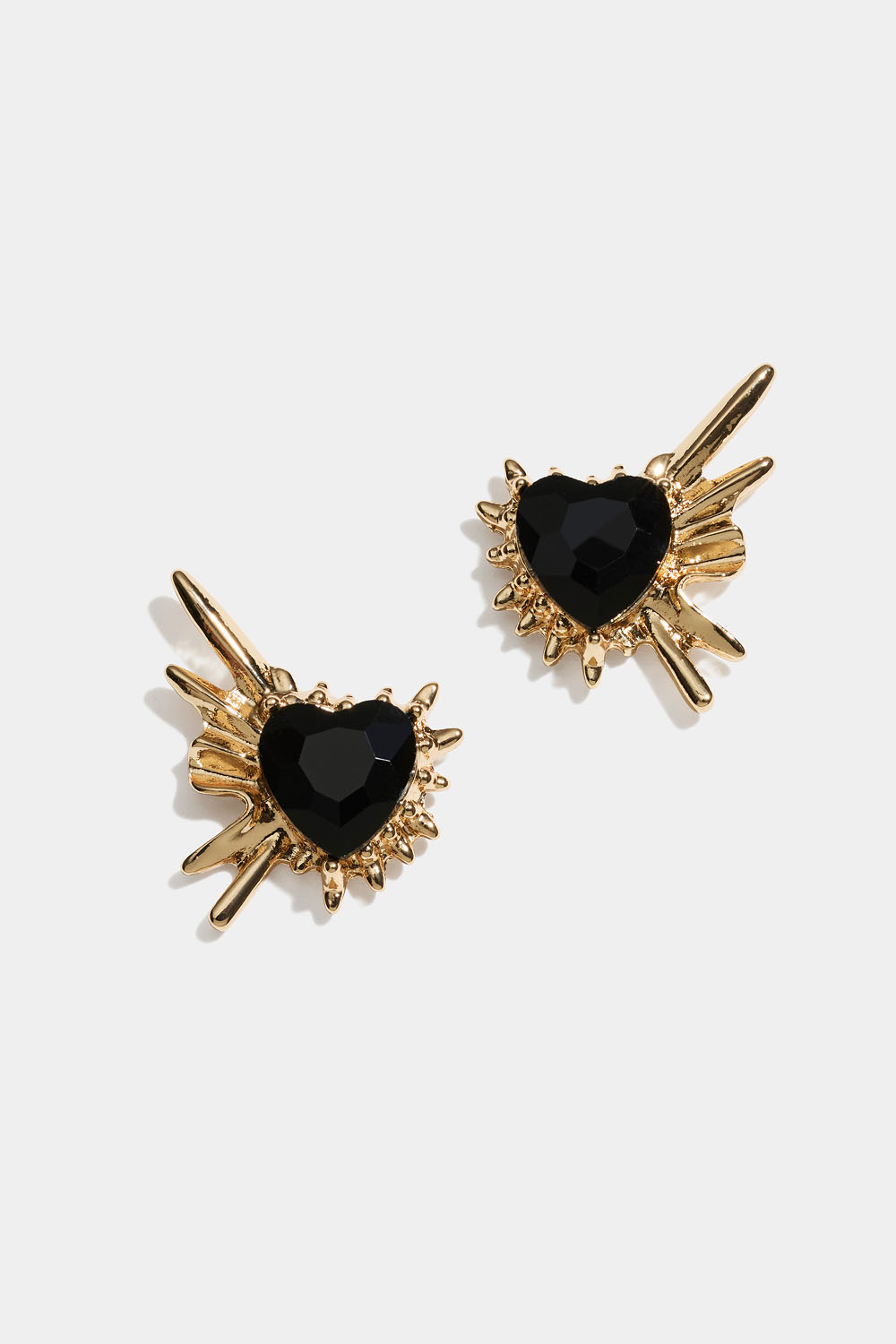 Studs med spisse detaljer og svarte hjerteformede glassteiner.