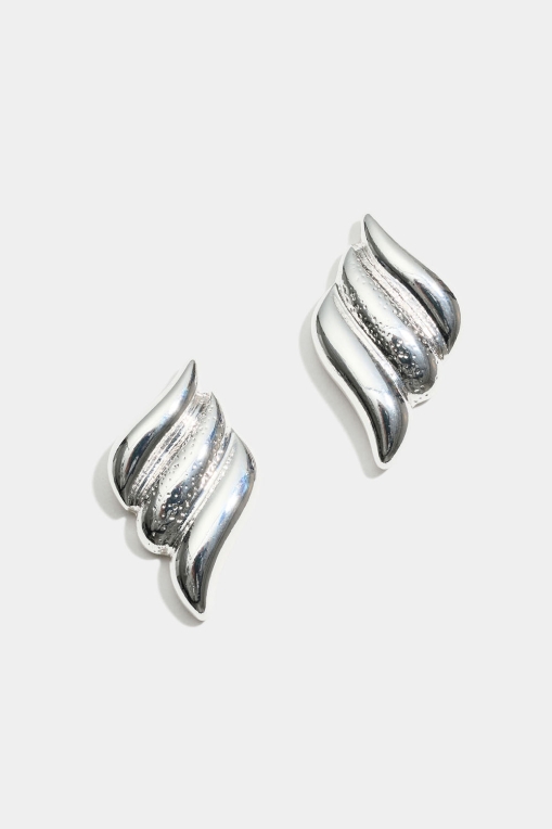 Store stiftøredobber i sølvfarget metall med tre bølgeformer.
