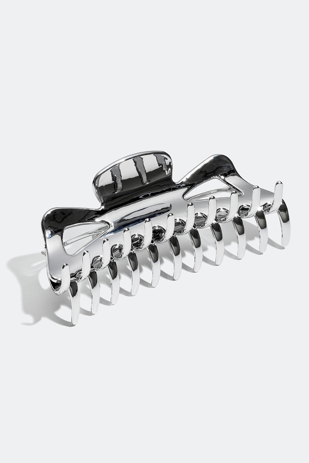 En hårspenne med klassisk design, i en større modell som holder styr på mye hår. Kommer i en metallisk sølvfarge som tilfører det lille ekstra til frisyren og er perfekt når du skal sette opp håret raskt og skånsomt.