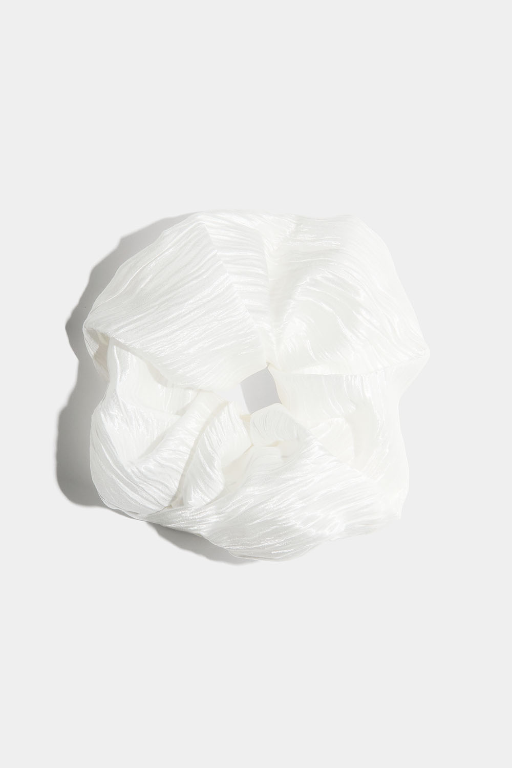 Stor scrunchie i hvitt skimrende, plissert stoff