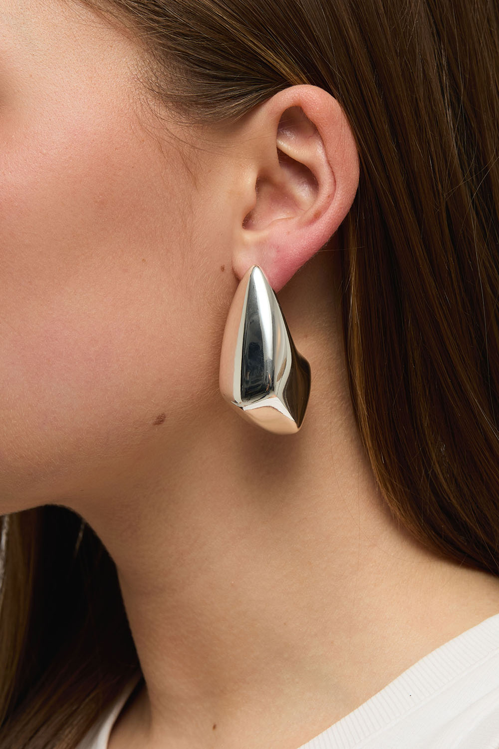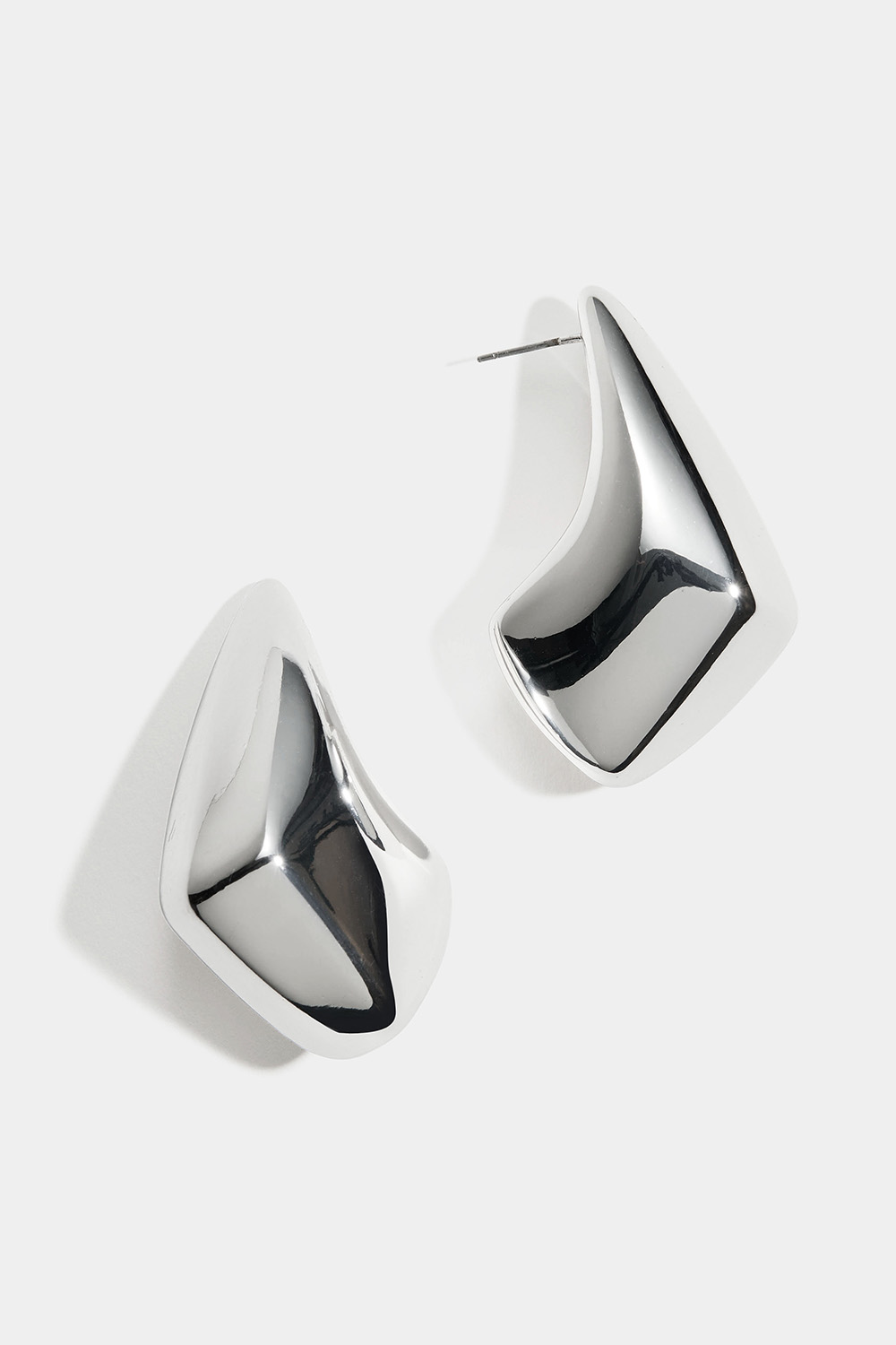 Store øredobber i blank sølvfarge med kantete dråpeform