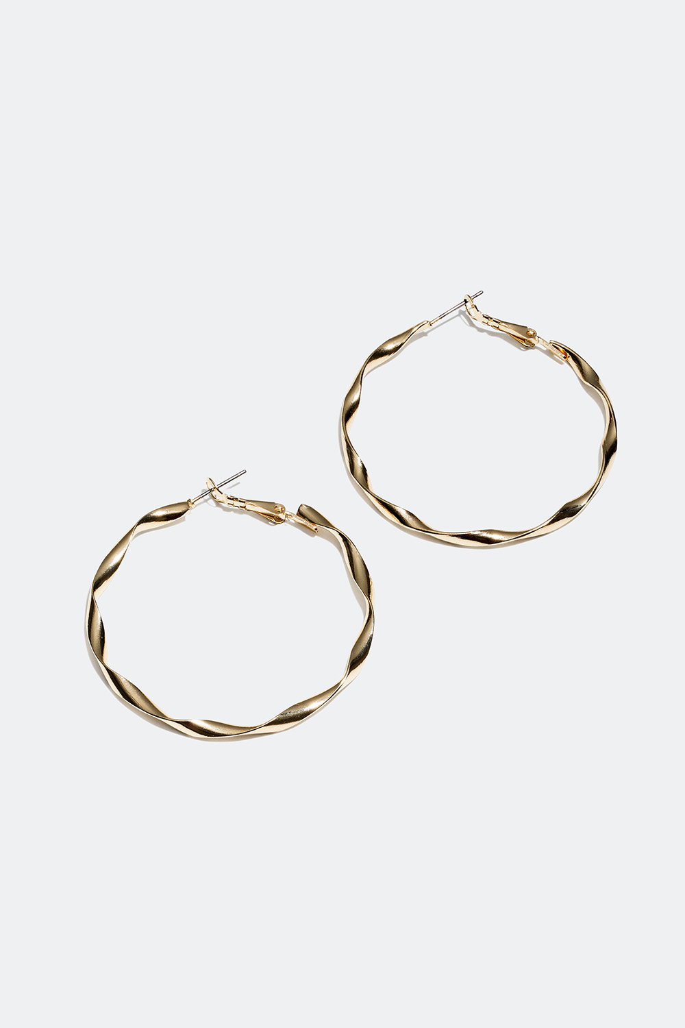 Store, men smale, vridde øreringer. Kommer i både sølv- og gullfarget metall.