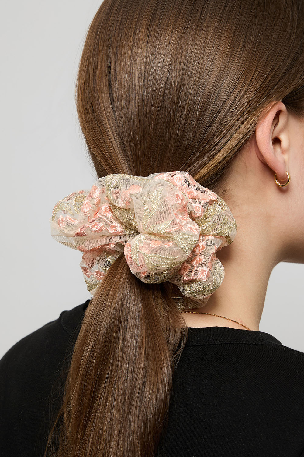Stort hårstrikk med broderte blomster i gruppen Håraccessories / Scrunchies hos Glitter (332002087800)